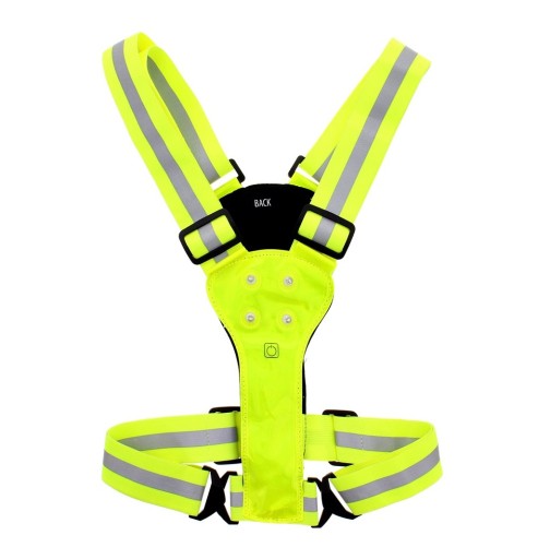 жилет має вбудовані 4 світлодіодні ліхтарі (спереду і ззаду), щоб забезпечити кращу видимість на відкритому повітрі в темний час доби.