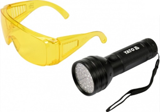 УФ-ліхтарик призначений для діагностики систем кондиціонування автомобіля за допомогою контрастної речовини. 51 LED UV забезпечує потужний промінь випромінювання, що полегшує виявлення витоків. У набір входять окуляри із захистом від ультрафіолету, які відповідають вимогам Європейської директиви щодо засобів індивідуального захисту.