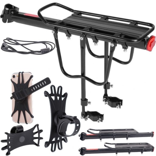 Універсальне алюмінієве кріплення для велосипеда з максимальною вантажопідйомністю до 50 кг. Стійко кріпиться до підсідельної труби (діаметр труби 27,2-31,8 мм) і до задньої частини рами за допомогою швидкороз'ємного кріплення (швидке кріплення самої платформи до підсідельної труби) і гвинтів, що забезпечують стійку опору.