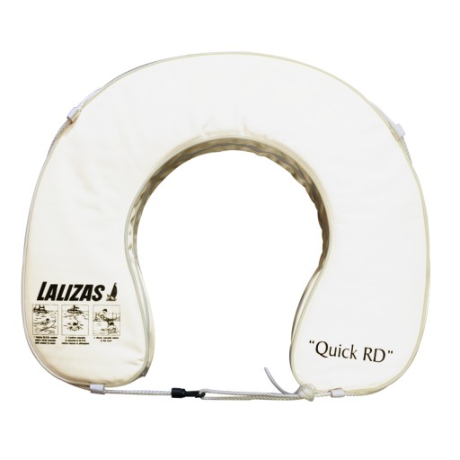 Підкова рятувальна "QUICK RD" 145N. Зовнішня частина (чохол) виготовлена з поліестеру, всередині поролон високого об'єму. Підковоподібна форма дозволяє будь-кому використовувати його безпечно, швидко та зручно, коли це необхідно. Яскравий колір гарантує хорошу видимість за будь-яких умов. Матеріал і написи на підкові не вицвітають і стійкі до УФ-променів.