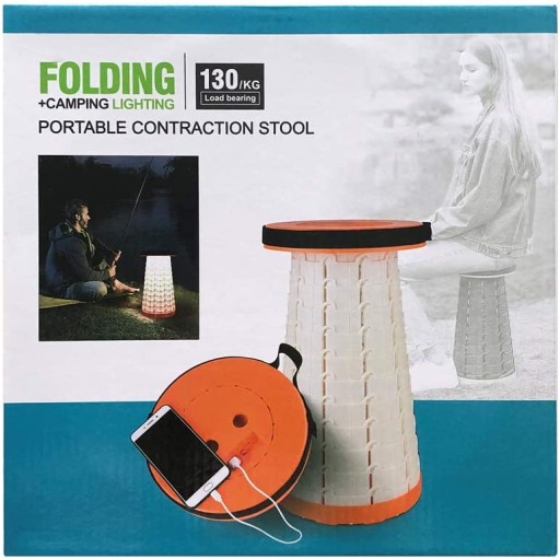 Складний табурет, портативний телескопічний інструмент з підсвічуванням (можна використовувати для зарядки мобільного телефону) Табурет для кемпінгу, регульований по висоті, складається назовні та всередину
