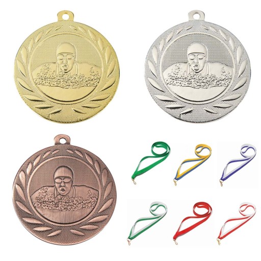 Медалі з плавання діаметр 50 мм + стрічки 11 мм + гравірування