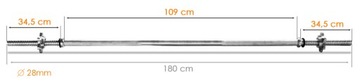 ГРИФ ПРЯМОЙ РЕЗЬБОВОЙ ШТАНГИ 180СМ FI28 КЛЕММЫ