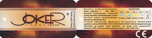 Кожна пара окулярів має оригінальне маркування на внутрішній стороні дужок; логотип виробника, номер моделі, категорія фільтра та маркування CE