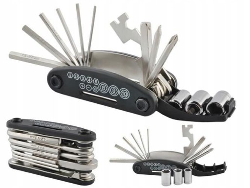 У набір входить 16 найважливіших інструментів для регулювання велосипеда. Все це було укладено в компактну форму кишенькового ножа. У складеному вигляді він поміщається в руці і його легко зберігати, наприклад, у кишені або в сумці для велосипеда. У набір входять шестигранні ключі, викрутки, розетки з перехідником, ріжкові ключі та спеціальний ключ для спиць.