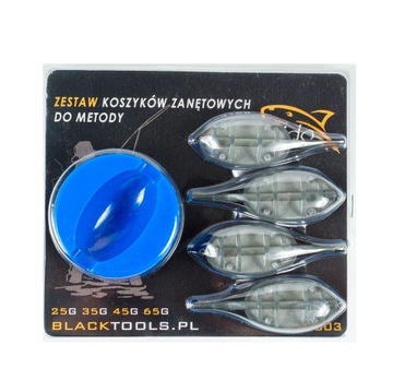 Zestaw koszyków zanętowych do metody.Jest to koszyk przygotowany specjalnie do łowienia na tzw metodę. Delikatnymi wędkami drgającymi, z zestawami o bardzo krótkich przyponach . Co w połączeniu z nęceniem punktowym , do jakiego idealnie przystosowany jest ten koszyk, sprawia,że to bardzo skuteczna technika w połowie dużych karpii, leszczy i innych ryb.