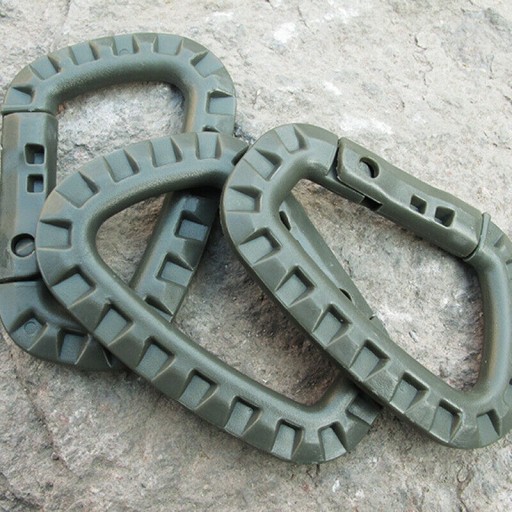 Дуже міцний, практичний карабін з ABS пластику, який кріпиться на пояс або мотузку. Пряжка також може використовуватися як підвіска або елемент кріплення для ключів, обладнання та електроінструментів.