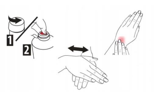 Рівномірно розпиліть препарат на відкриті ділянки тіла, які піддаються контакту з комахами, з відстані 15-20 см. Препарат можна розподілити рукою.