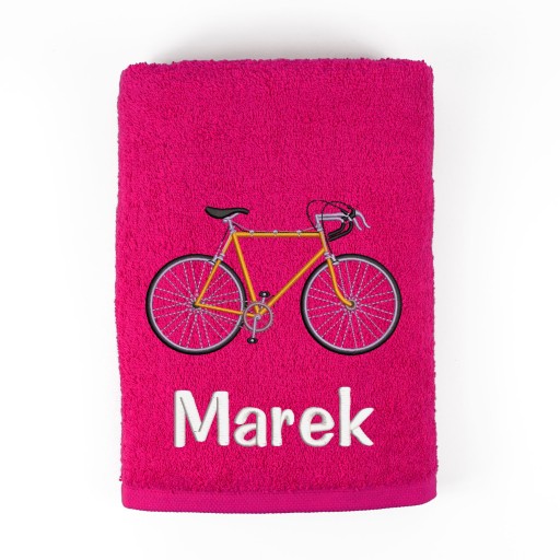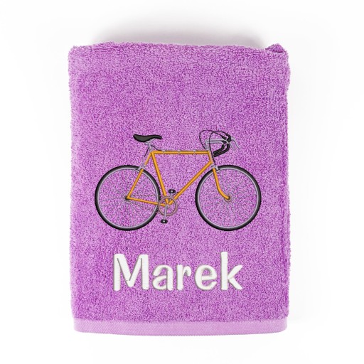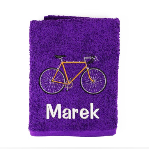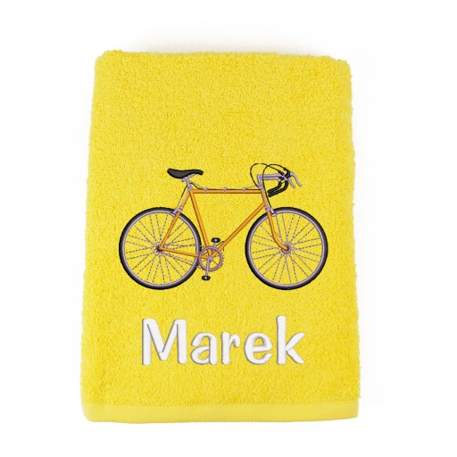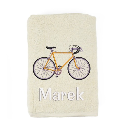 Рушник банний 70х140см з вишитим велосипедом + Ваше ім'я