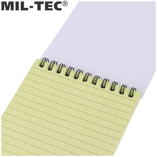 Дуже практичний блокнот / водонепроникний блокнот з військовою специфікацією, німецький бренд Mil-Tec. Пристосований для використання під час дощу чи хуртовини, а також для носіння в мокрому одязі чи мокрому рюкзаку.