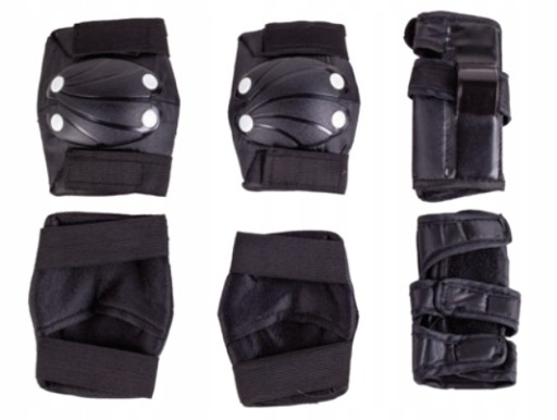 Наколінники, налокітники та зап'ястя — це необхідний набір для кожного любителя кататися на роликових ковзанах, роликах, скейтборді або самокаті, особливо коли він тільки починає свою спортивну пригоду. У набір входять протектори, які захищають місця, особливо схильні до травм. Еластичний матеріал і застібка на липучки забезпечують точну посадку. Це пропозиція для всіх, хто піклується про свою безпеку під час активного проведення часу. Продукт слід використовувати з іншим захисним спорядженням, таким як шолом.