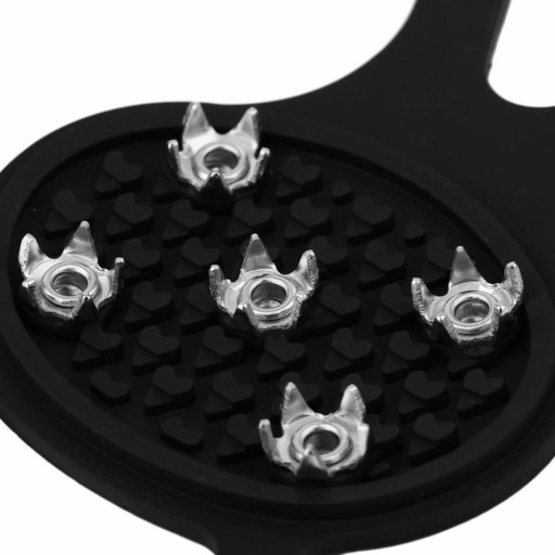 Завдяки їм ви зможете легко і швидко підготувати взуття до походу в гори або по крижаній місцевості. Просто натягніть накладки на взуття, і все готово. Виготовлені з міцної еластичної гуми, завдяки чому ідеально поєднуються з формою взуття. Вони також мають металеві шипи для тяги.