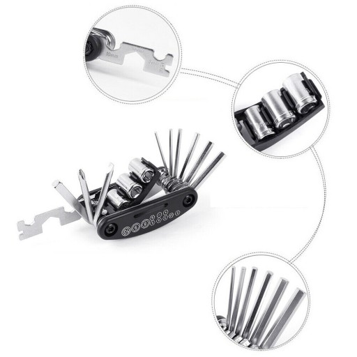 ✅ НАБІР ІНСТРУМЕНТІВ ДЛЯ ВЕЛОСИПЕДІВ. Набір інструментів для багатофункціональних велосипедів включає шлицеву викрутку, шестигранний ключ на 8/9/10/мм, рожковий ключ на 8/10/15/мм, хрестоподібну викрутку, подовжувач торцевого торця, шестигранний ключ на 2/2,5/3/4/5/6 мм, гайковий ключ для спиць.