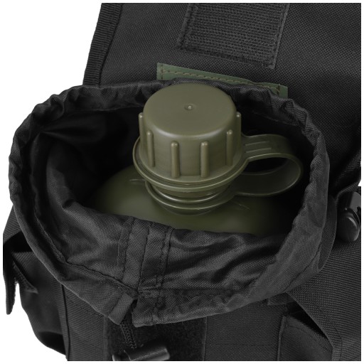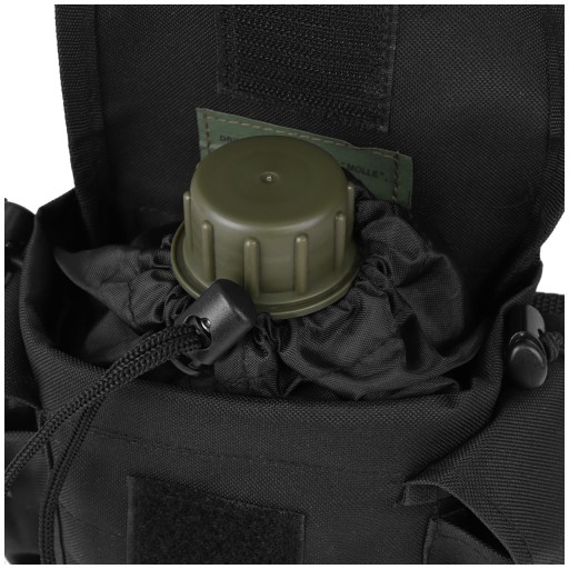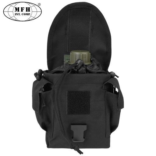 MFH Bottle Pouch — універсальний контейнер для їдальні або іншого обладнання. Основне відділення сумки закріплено регульованим коміром, щоб вміст не випадково випав, клапанами на липучках і регульованим ремінцем із пряжкою.