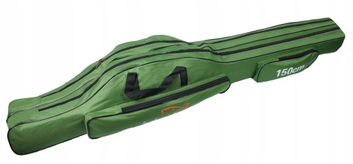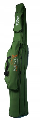 Чохол виготовлений з жорсткого матеріалу кольору армійського зеленого. Має 2 камери по 150 см. Зручно носити в руці або на плечі, міцно виготовлена з дуже якісного жорсткого матеріалу. Збоку є кишені, в яких можна носити менші аксесуари, їх розміри: 55х12см і 32х12см.