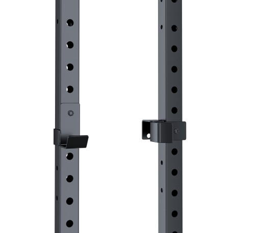 Модель оснащена гачками / тримачами для штанги, їх можна регулювати за допомогою отворів в стійках (регулювання від 41 до 161 см), завдяки чому ви можете безпечно виконувати більшість вправ зі штангою, наприклад; преси, присідання та ін.