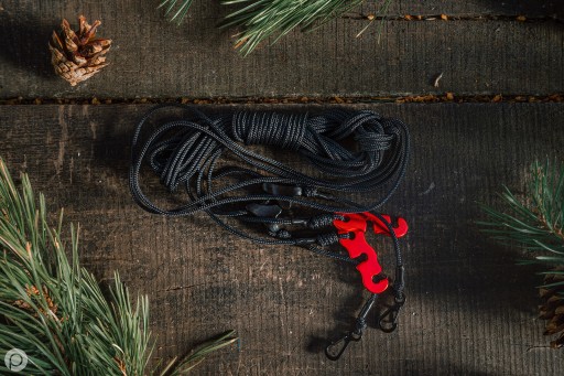 дуже проста безвузлова модель строп, яка прискорить навішування нашої покрівлі. І, як ми всі знаємо, у невизначену погоду кожна секунда цінується. 7 метрів поясу достатньо навіть при більшій відстані між деревами. Після кріплення лямок маємо брезент, постійно натягнутий на основну тятиву.