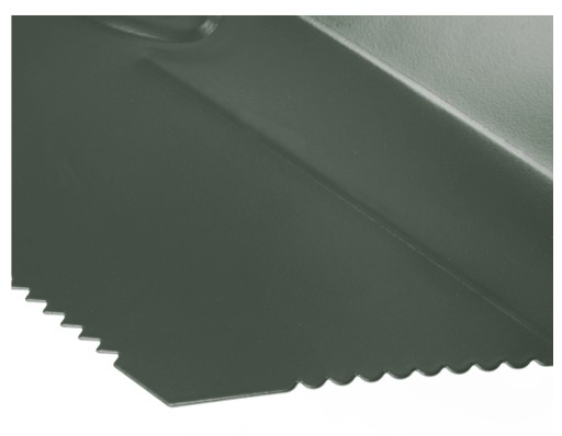 Верхні краї лопати загнуті, що дозволяє встромляти лопату башмаком і копати твердий грунт. На одному з країв є пилка для коріння або кущів.