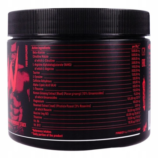 BOOGIEMAN PRE-WORKOUT - дієтична добавка, призначена для спортсменів, яка вживається безпосередньо перед найскладнішими тренуваннями та змаганнями. BOOGIEMAN PRE-WORKOUT містить вітаміни групи В, такі як ніацин, вітамін B6 і віт. B12, які сприяють зменшенню відчуття втоми та втоми BOOGIEMAN PRE-WORKOUT – дієтична добавка, що містить підсолоджувачі та кофеїн; не рекомендовано застосування дітям та вагітним (50 мг у добовій дозі 3,3 г). BOOGIEMAN PRE-WORKOUT призначений для професійних спортсменів. Рекомендована добова доза - 3,3 г.