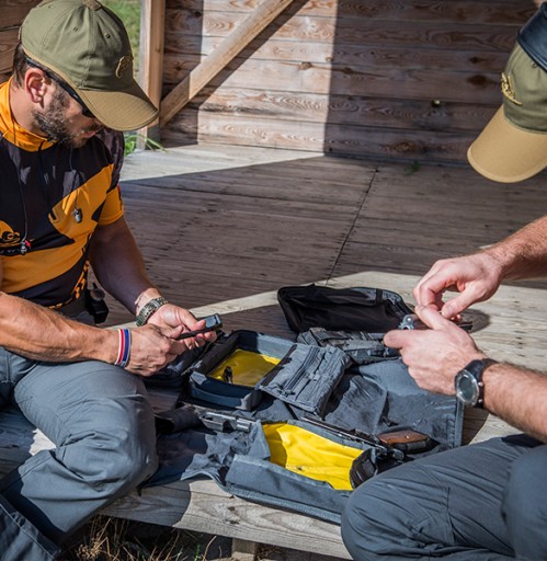 У набір також входить килимок і лоток для чищення пістолетів і карабінів, які переносяться під чохлом в еластичному шнуротримачі.