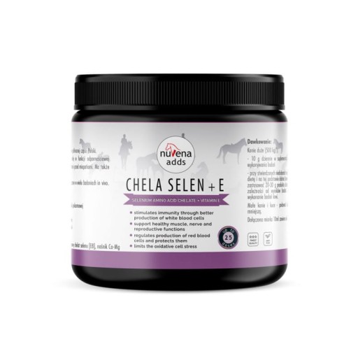 Хелат амінокислоти селену з вітаміном Е для коней. Добавка для поповнення дефіциту селену. Його також можна використовувати в профілактичних цілях. Пакет є запасом на 25 днів профілактичного прикорму.