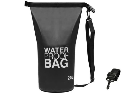 Сумка виготовлена з міцного матеріалу, який не тільки є водонепроникним, але й ефективно захищає предмети всередині від подряпин і забруднень, таких як бруд, пісок або сіль. Чорний колір і гладка, слизька поверхня не вбирають вологу та бруд, що робить його ідеальним навіть під час екстремального, інтенсивного використання та гарантує легке очищення. Виріб міцний і забезпечує багаторазове використання протягом тривалого часу. Сумка об'ємом 20 літрів дозволяє розмістити всередині багато корисних і цінних предметів, таких як телефон, гаманець, одяг, взуття, книги, карти, фотоапарат, електронне обладнання, професійне обладнання, а також великогабаритні речі, в залежності від індивідуальних потреб.