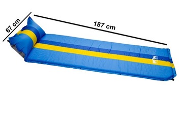 Mata jednoosobowa samopompująca z poduszką to wysokiej jakości produkt idealnie nadający się na wszelkiego rodzaju biwaki. Jest świetną alternatywą dla tradycyjnej karimaty, przy tych samych wymiarach - oferuje znacznie większą wygodę. Zastosowanie materiału PVC sprawia, że mata ma bardzo dobre właściwości izolacyjne, dając komfort cieplny przy każdej pogodzie. Mata samoczynnie zaciąga do środka powietrze, więc Ty nie musisz nic robić, aby ją rozłożyć! Jest lekka i łatwa do przenoszenia.