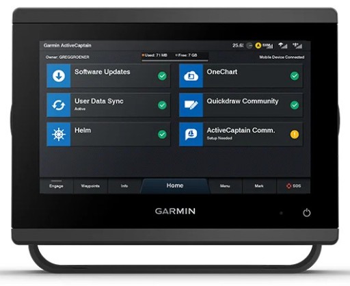 Вбудований Wi-Fi® дозволяє підключатися до безкоштовної універсальної мобільної програми для доступу до OneChart™, сповіщень телефону, оновлень програмного забезпечення, цифрового перемикання Garmin Helm™, даних спільноти Garmin Quickdraw™ тощо.