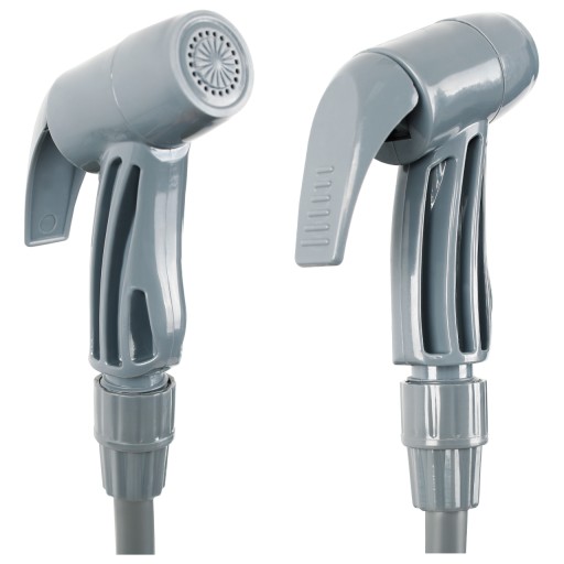 Зручна душова насадка з функцією тропічного душу. Пістолетний клапан з ABS пластику економить воду, при відпусканні перекриває струмінь. Великий носик із кришкою, що не втрачається, швидко наповнюється та можна мити всередині. Зручна, гумова транспортувальна ручка відстібається, що дозволяє повісити її, наприклад, на гілку дерева.