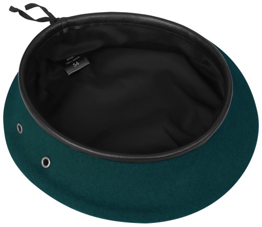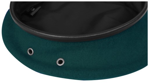 Берет оснащений шнурком. З лівого боку він має почорнілі заклепки з нержавіючої сталі, які служать вентиляційними отворами.