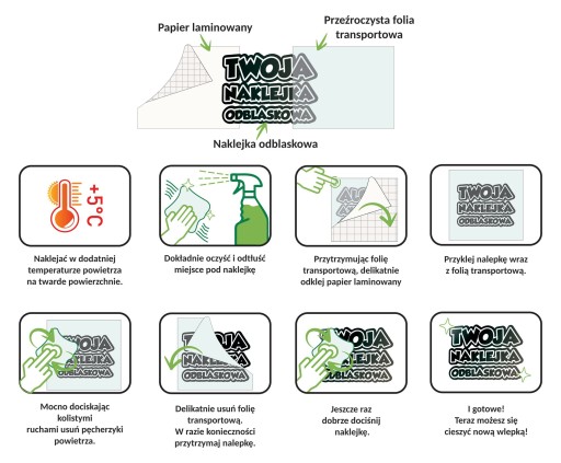 - Наклейка поставляється на транспортній фользі, що полегшує її нанесення.