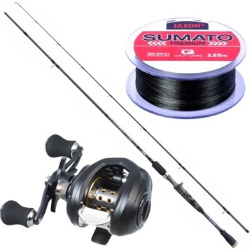 Profesjonalny zestaw do łowienia spinningowego wędką castingową z kołowrotkiem typu multiplikator.