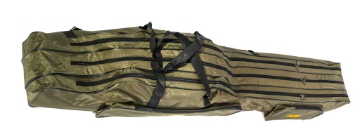 Міцний, добре виготовлений рибальський чохол з дуже якісного матеріалу. Чохол має три основних відділення для транспортування вудок і котушок. Всі блискавки виготовлені з міцного металу. Додатково збоку чохол має дві бічні кишені для дрібних аксесуарів: підсадки, підставок або ящиків. Чохол можна носити зверху за вуха або на плечі за допомогою бічного ременя. Чохол зсередини прогумований і водонепроникний.