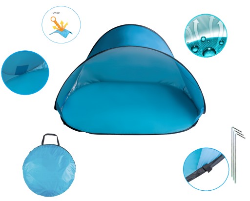 Міцний, виготовлений з високоякісних матеріалів. Має фільтр UV-50. Ідеально підходить для дітей, які грають на вулиці (сад, пляж), а також для дорослих - як щит від вітру та сонця. Він чудово підійде під час відпустки, на пікніку, на пляжі чи під час риболовлі.