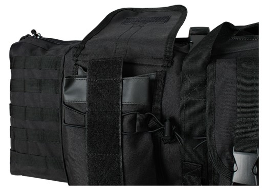 Великий патронник для рушниці має внутрішню систему кріплення, яка застібається на липучку, що запобігає зсуву зброї. Зовнішні стінки, наповнені товстим жорстким пінопластом, захищають зброю від пошкоджень під час транспортування, а також від розстроювання прицілів і оптики.