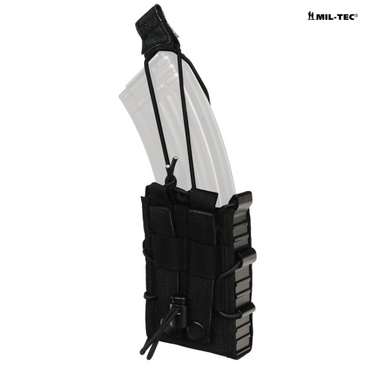 Захист від втрати гумових магазинів Bungee (Shock Cord). Захист висувається зверху, запобігає безконтрольному випаданню магазина. Стрічкова ручка, оздоблена нековзкою гумою, дозволяє легко розблокувати сумку в рукавичках. Якщо захист не потрібен, можна зняти гуму або обернути її навколо входу мішечка (положення готовності). М'яка липучка всередині дозволяє додатково захистити магазини після приклеювання до них смужок твердої липучки. М'яка липучка також захищає оксид/анод від стирання.
