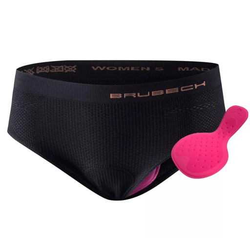 Жіночі трусики з вело вставкою виготовлені за безшовною технологією з тонкої дихаючої тканини. Трикотаж, який прилягає до тіла, і 3D-структура створюють повітряні канали. Влітку вони посилюють вентиляцію організму, а взимку збирають тепле повітря, захищаючи від переохолодження. Конструкція на основі тривимірної сітчастої моделі в кілька разів збільшує поверхню збору вологи. Легка вага, приталений крій, м'яка тканина не сковує рухів і захищає від потертостей. Велосипедні вкладиші з надтонкої піни високої щільності на основі відкритокоміркової структури поглинають удари та нейтралізують удари. Вони були сформовані з урахуванням анатомічних деталей і відмінностей у будові тіла залежно від статі. Тканина має антибактеріальні та протиалергічні властивості. Цілорічний продукт, рекомендований для різних видів діяльності як базовий шар.