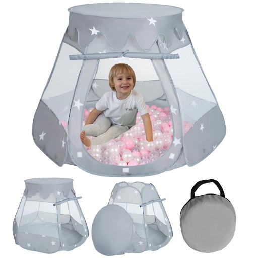 Намет у формі замку з різнокольоровими кульками - чудова розвага для вашої дитини. Ідеально підходить для гри як у приміщенні, так і на вулиці. Завдяки невеликому розміру його можна взяти куди завгодно - на пляж, у подорож чи до бабусі та дідуся.