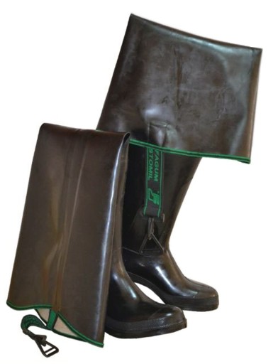 Вейдерси, виготовлені повністю з гуми, ідеально підходять для риболовлі та різноманітних робіт, що виконуються в складних умовах. Польський продукт.