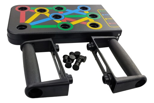 - Виберіть м'язи, які ви хочете тренувати, і розташуйте ручки в потрібному місці за кольором: зелена - спинка; синій - плечі; жовтий - трицепс; червоний - груди