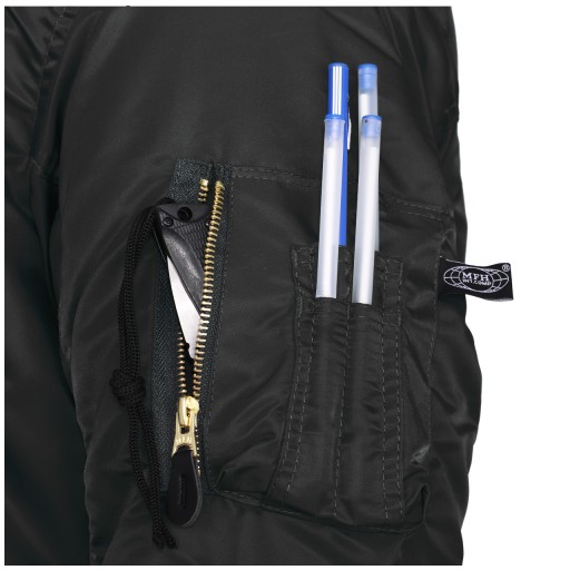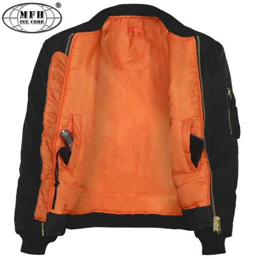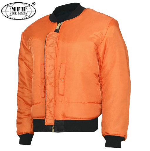 Куртка MA1 від німецької компанії MFH – культова двостороння куртка американських армійських пілотів – т.зв. Флаєрс, Флек. Виготовлено відповідно до строгих військових вимог з використанням міцних матеріалів з увагою до деталей. Використовується пілотами винищувачів і екіпажами бомбардувальників, наземними екіпажами і авіаносними командами.