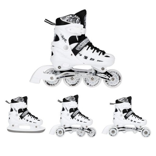 NH10905 Set Nils Extreme - це ковзани, призначені для любителів кататися на ковзанах. Продукт пропонує 4 варіанти конфігурації. Це: ковзани, роликові ковзани, роликові ковзани та роликові ковзани. Ролики справляють надзвичайне враження завдяки колесам, що світяться.
