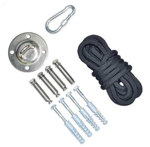 Найважливішим аксесуаром для кріплення на стелі гамаків або гойдалок бразильського типу є міцний мотузковий комплект. Міцні, довговічні елементи забезпечують високу вантажопідйомність і можливість індивідуального вибору місця підвішування. Чудовою ідеєю буде встановити його у вітальні або на терасі або в альтанці.