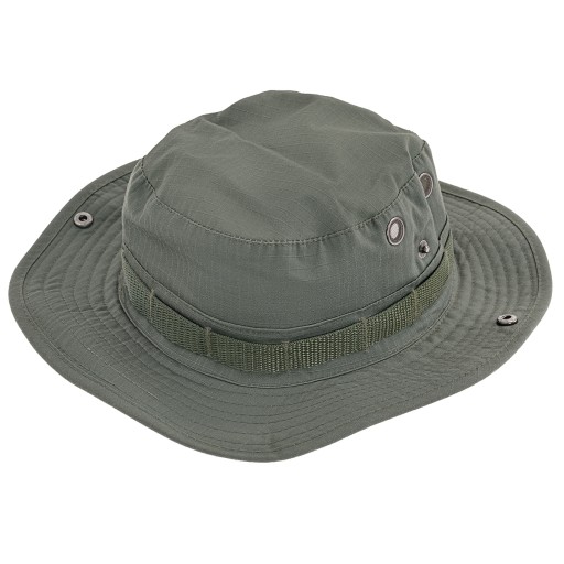 Широкі поля захищають від сонця та дощу. Завдяки металевим застібкам можна закріпити краї вгору. Крім того, навколо шапки пришита стрічка, що дозволяє прикріпити дрібні предмети (наприклад, засіб від комах, елементи камуфляжу).