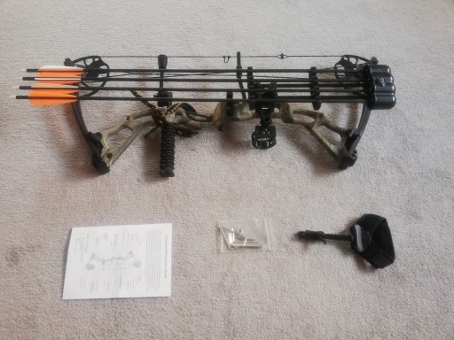 Лук готовий до стрільби, в комплекті все що на фото. Шнурок захищає лук від випадання з руки. Приціл являє собою волоконно-оптичну 3-контактну регульовану основу для пензля Whisker