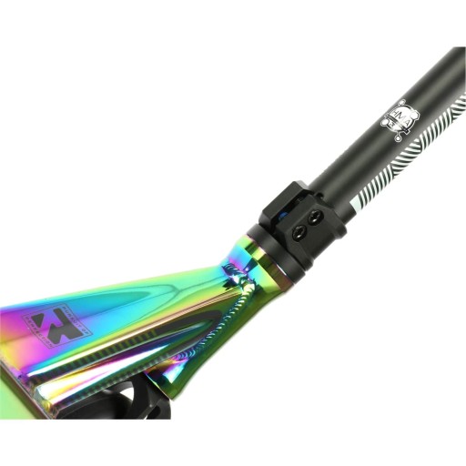 Керуйте скутером з легкістю завдяки ідеально збалансованій деці з достатньою кількістю місця для ніг. Стабільна їзда завдяки неймовірно широким колесам 110 мм, створеним для трюків. Планка HMA на 50% міцніша за традиційні алюмінієві планки, але важить однаково. Робіть батоги з легкістю завдяки легкому керму та надзвичайно плавним елементам керування.