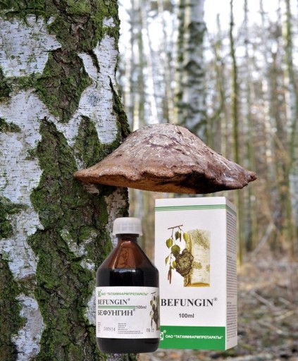 Бефунгін - концентрований екстракт багатоножника чорного (Inonotus Obliquus), що росте на сибірських березах. Чага має активні інгредієнти, які не походять від господаря (берези), це бетулін і бетулінова кислота, які використовуються як стимулятори імунної системи. Тільки в цій формі (водно-спиртовий розчин) є ці речовини.