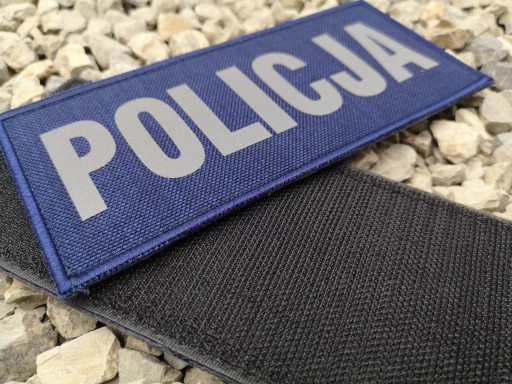 Поліцейська нашивка на липучці (так звана нарзепка), яку можна прикріпити до одягу чи спорядження. Світиться в темряві напис "POLICJA" виконано на тканині чорного кольору розміром 16,5 см х 7,5 см. На задній частині наколінника є міцна застібка-липучка, завдяки якій немає ризику відірватися від форми.