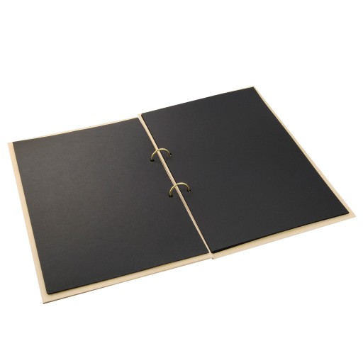 - Хребти обкладинок з'єднані двома відкриваючими золотими кільцями.