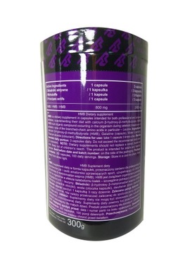 Skład: β-hydroksy β-metylomaślan (HMB), żelatyna (składnik otoczki), woda (otoczka kapsułki), dwutlenek tytanu (barwnik).